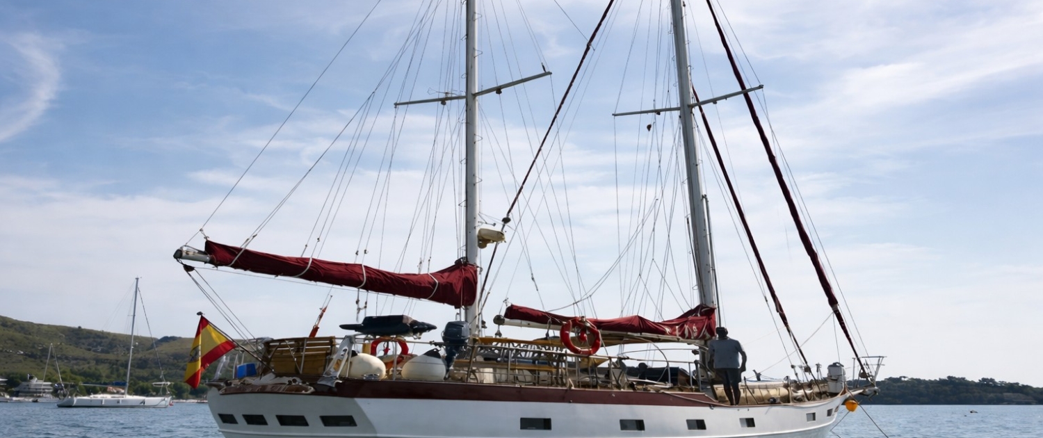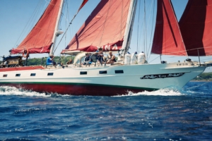 Tina is a beautiful Sparkman Stepehens 50 Ton Ketch, she can carry up to 5 sails and in a good wind sails at 8 knots